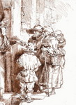 2006Bedelaar aan de deur naar een ets van R. van Rhijn in inkt.