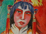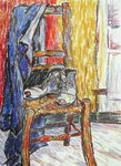 Oliepastel op papier of karton, soms grof opgezet, soms laag over laag