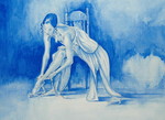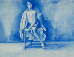 2006Balletdanser in voorbereiding in blauw naar een affiche van een balletvoorstelling