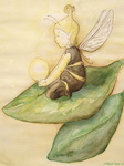 2013Elfje op bloem wijst naar een waterdruppeltje