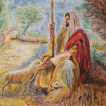 2001Rustende herder met schapen in oliepastel en inkt