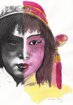 2004Half zwart/wit (foto) half ecoline portret van meisje uit Singapore