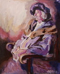 2007zittende oude man in lila/paars naar een schilderij van R. van Rhijn